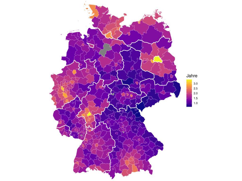 Im Landkreis Starnberg bei München liegt die durchschnittliche Ansparzeit bei ganzen 27,55 Jahren. In günstigeren Gegenden wie dem Kyffhäuserkreis in Thüringen sind es dagegen nur 3,79 Jahre.